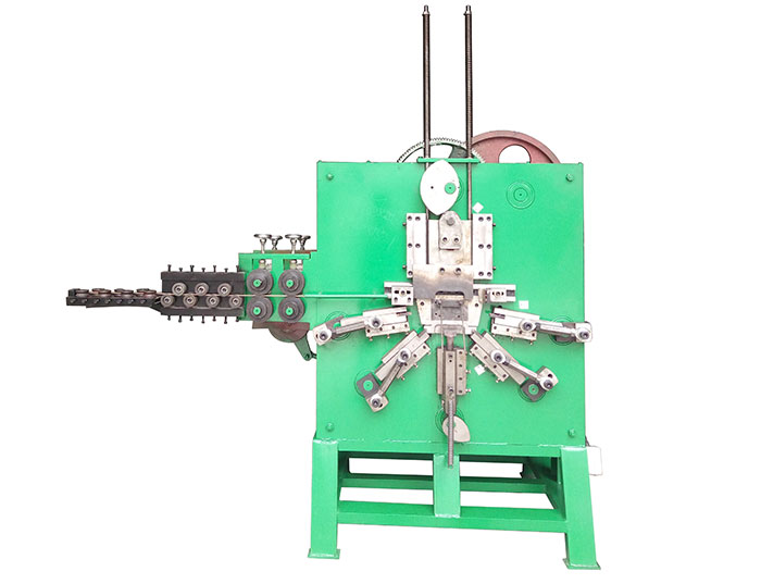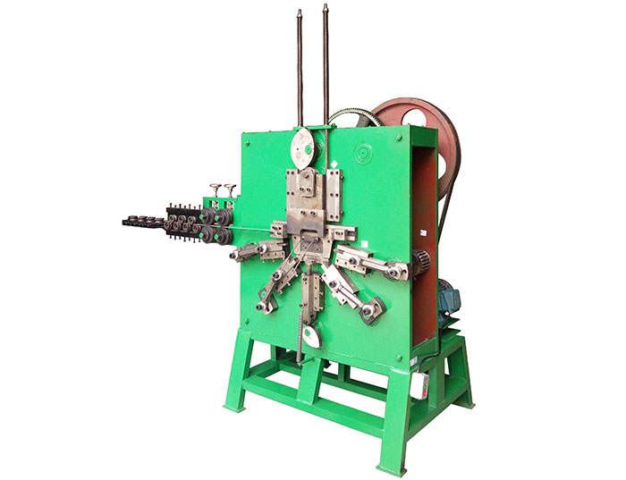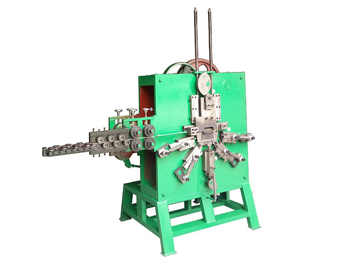 打扣機是我司根據(jù)市場需求設計制造的金屬線材扣自動生產(chǎn)機械。該機械采用電機提供動力,機械式傳動,傳動方式包括皮帶、齒輪、凸輪、導軌、彈簧等。通過傳動機構巧妙的傳動,配合不同的模具,可以生產(chǎn)不同形狀的金屬線扣。例如:D形扣,S形扣,方形扣,打包扣,夾子扣,跑道形扣,提手扣等。適用線材包括:鐵線,不銹鋼線,銅線,鋁線等。模具采用堅固耐磨的鉻鋼(Cr12MoV),可長期使用。電機采用名牌全銅電機,經(jīng)久耐用。機械全自動生產(chǎn),保養(yǎng)簡單,廣泛運用于服飾、包包、燈飾、家用小五金、鐵藝五金等行業(yè)。