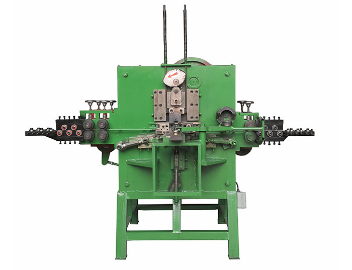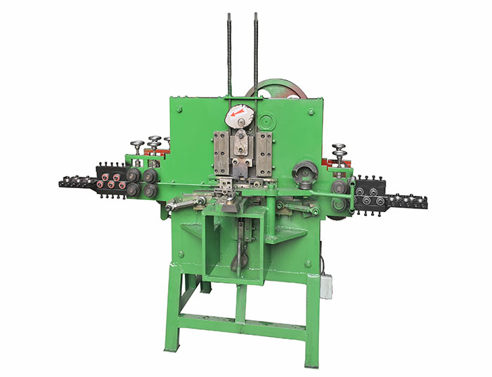 特種打扣機是我司根據市場需求,在打扣機的基礎上設計制造的特定金屬線材扣自動生產機械。該機械采用電機提供動力,機械式傳動,傳動方式包括皮帶、齒輪、凸輪、導軌、彈簧等。通過傳動機構巧妙的傳動,配合模具,可以生產不同規格的特定金屬線扣。例如:鉤扣,拉芯扣,針管扣,針扣,羊角扣,轉扣,豬膽扣等。適用線材包括:鐵線,不銹鋼線,銅線,鋁線等。模具采用堅固耐磨的鉻鋼(Cr12MoV),可長期使用。電機采用名牌全銅電機,經久耐用。機械全自動生產,保養簡單,廣泛運用于服飾、包包、燈飾、家用小五金、鐵藝五金等行業。